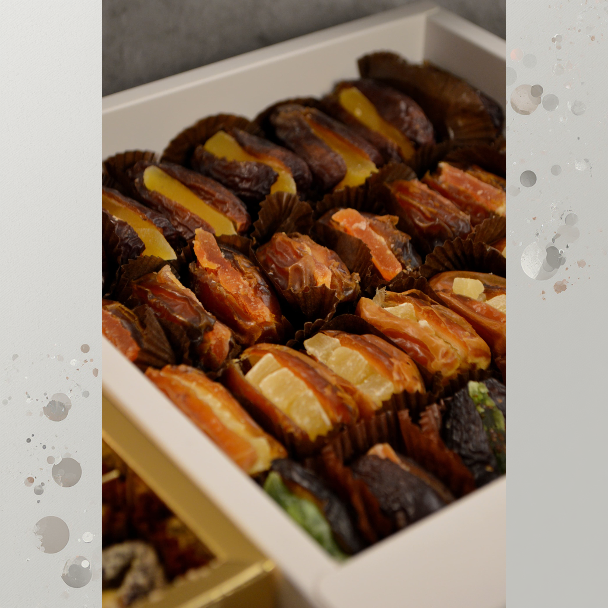 • Gourmet Infusions – Refined flavor accents such as orange zest, cardamom, rose, or coconut, adding a contemporary twist to traditional dates.